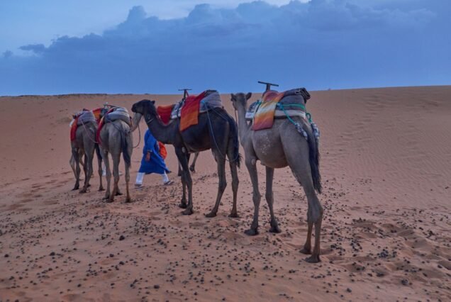 This 6 DAYS TOUR FROM MARRAKECH TO DESERT, begins from Marrakech and heads into the desert, starting with a breathtaking drive over the High Atlas Mountains to famous locations like the film studios of Ouarzazate and the Ait Ben Haddou Kasbah. Discover the splendor of Merzouga’s Erg Chebbi Dunes after seeing the Dades Valley and Todra Gorges. Savor overnight camping in the desert, camel riding, and cultural exchanges.