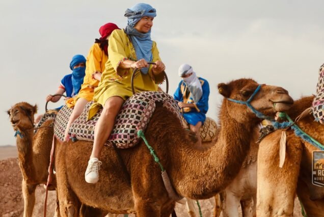 Dress in a traditional cheich (nomadic scarf) and set off on a peaceful camel trek through the rolling hills and lunar landscapes of the Agafay Desert. Enjoy panoramic views, serenity, and beautiful photo spots, especially at sunset.